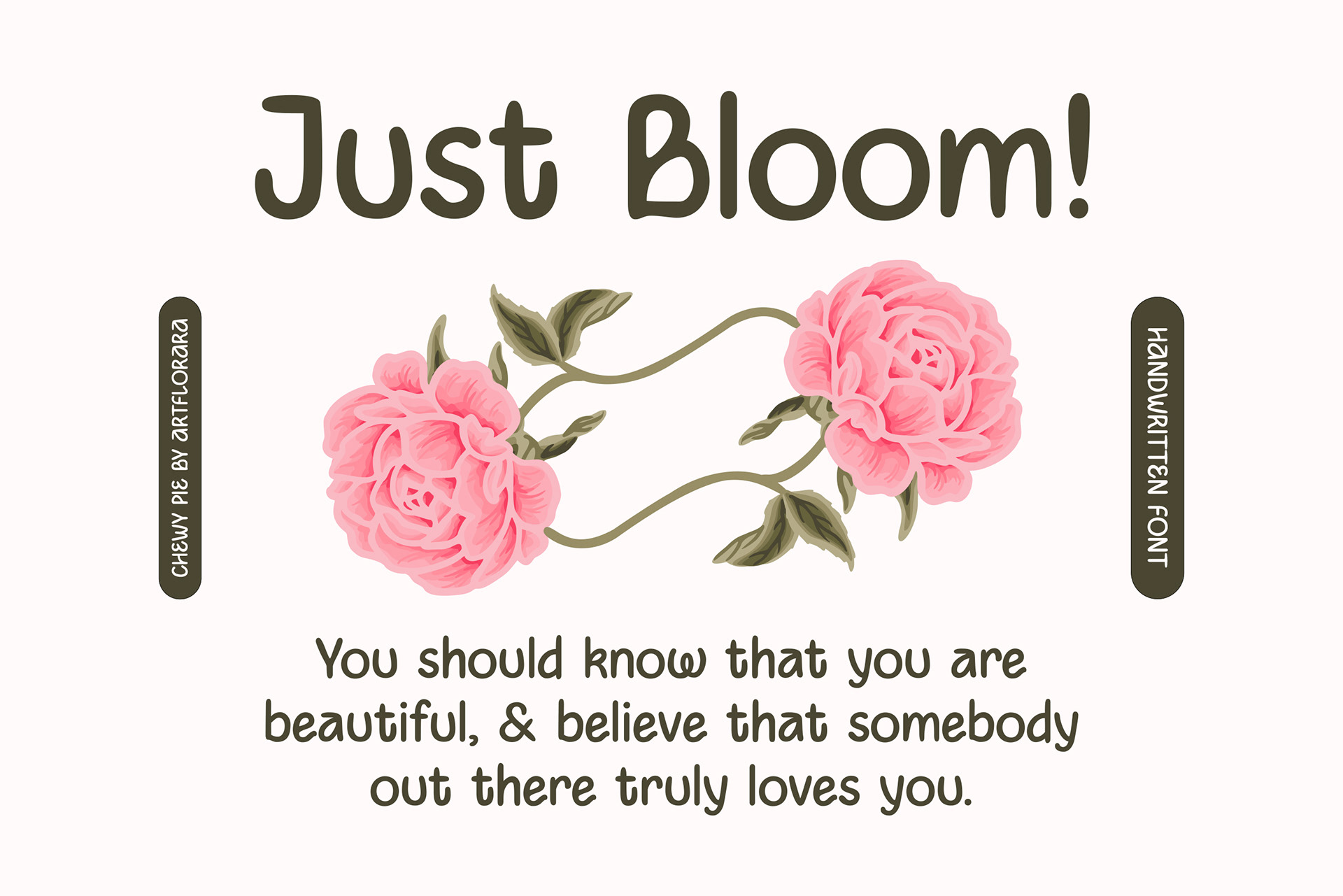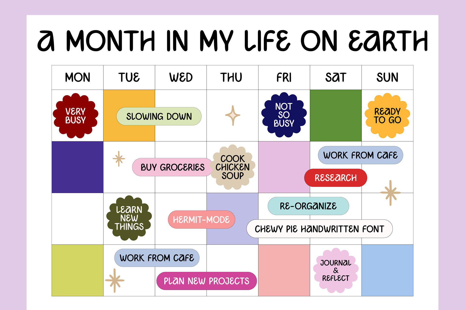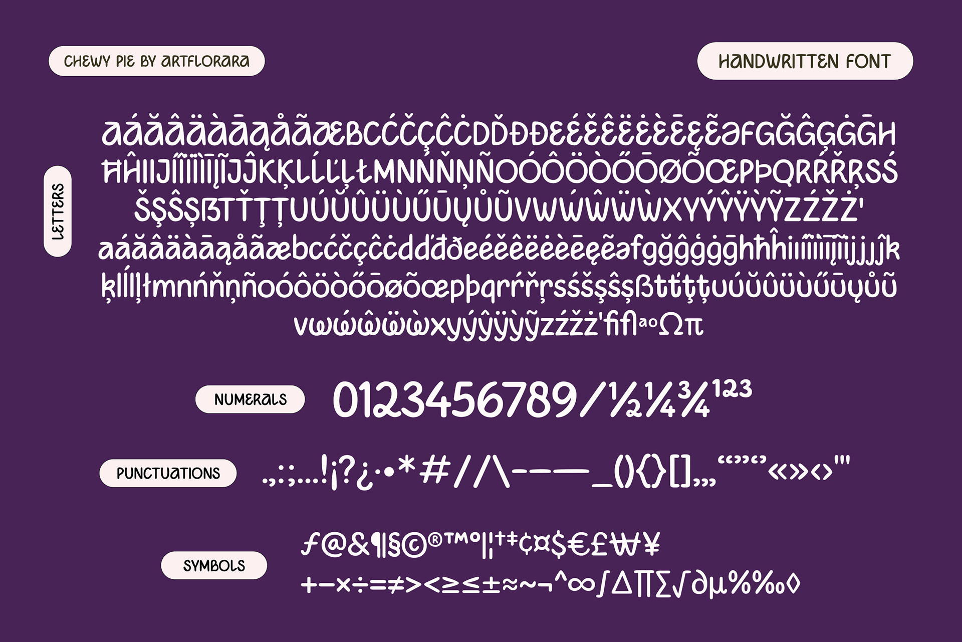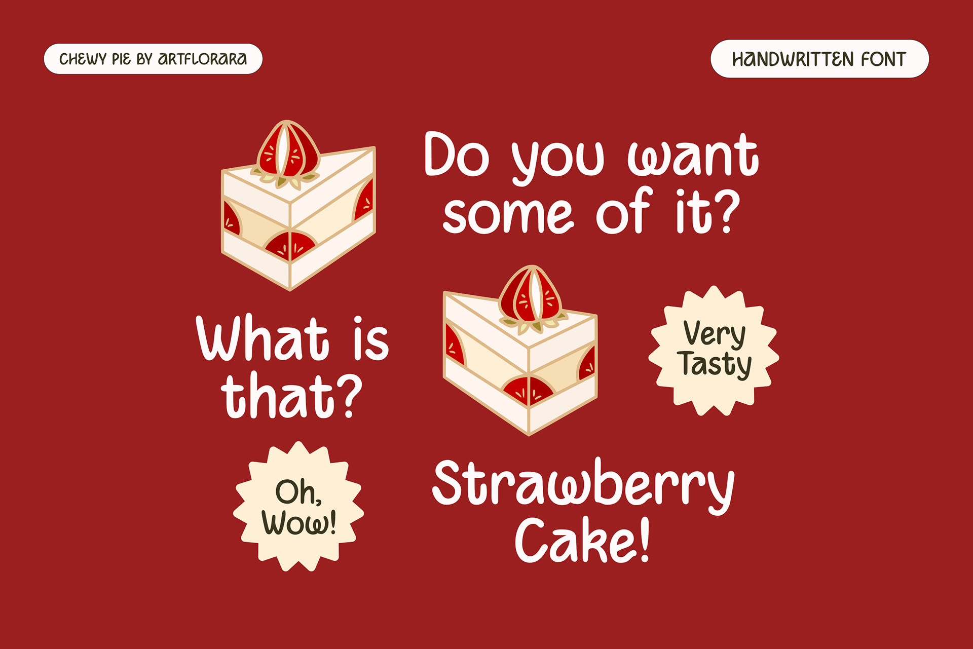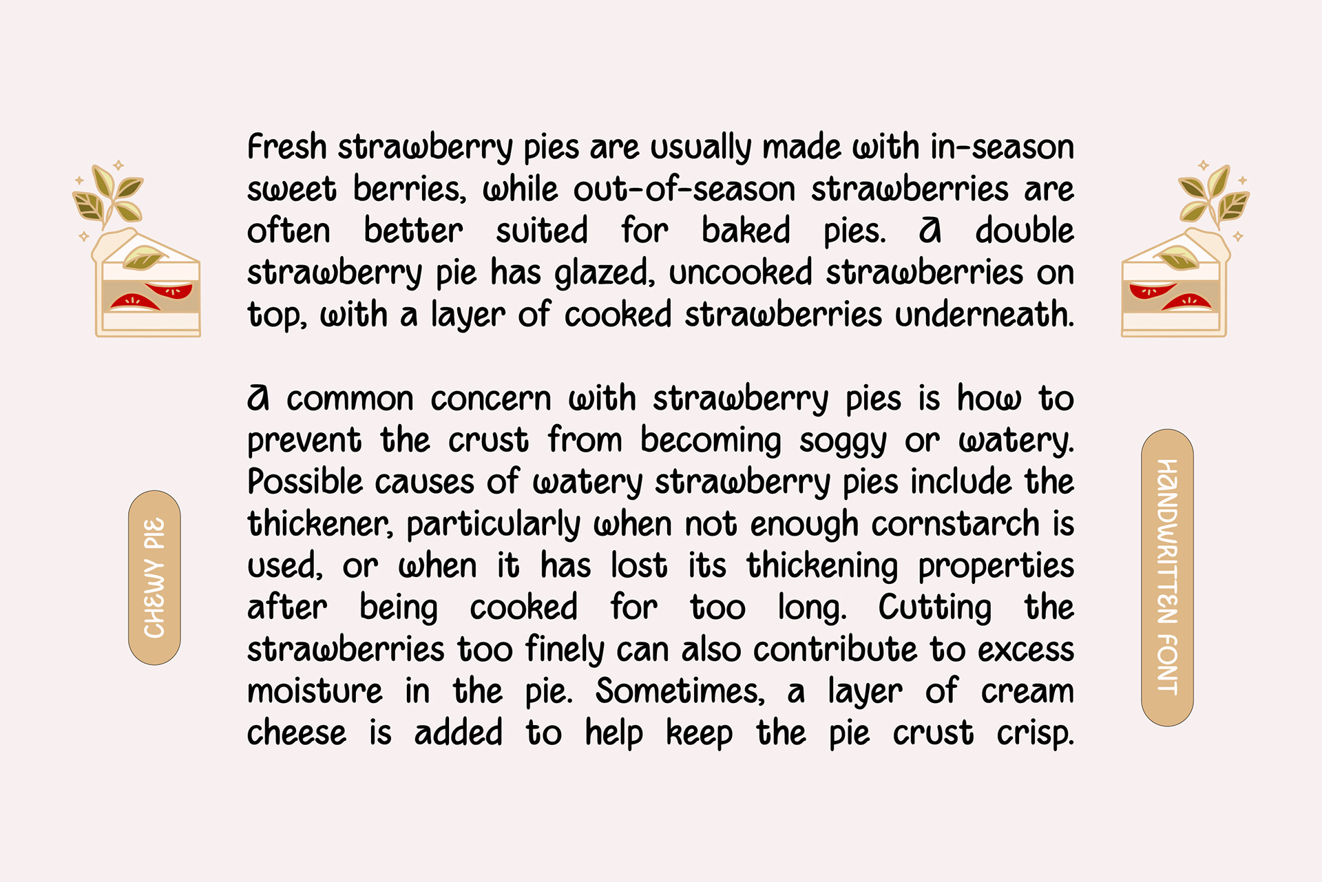 Chewy Pie is a handwritten font with playful, childlike vibes. The strokes within the characters give a natural, clean, and friendly quality that embodies simplicity.